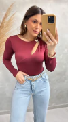 Body Poliamida Com Abertura E Fivela Dourada Marsala